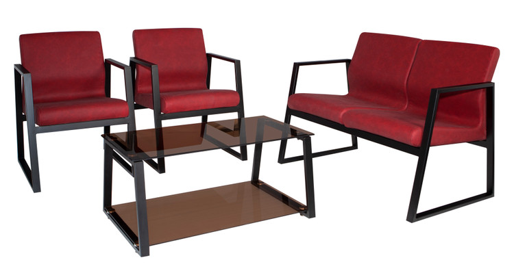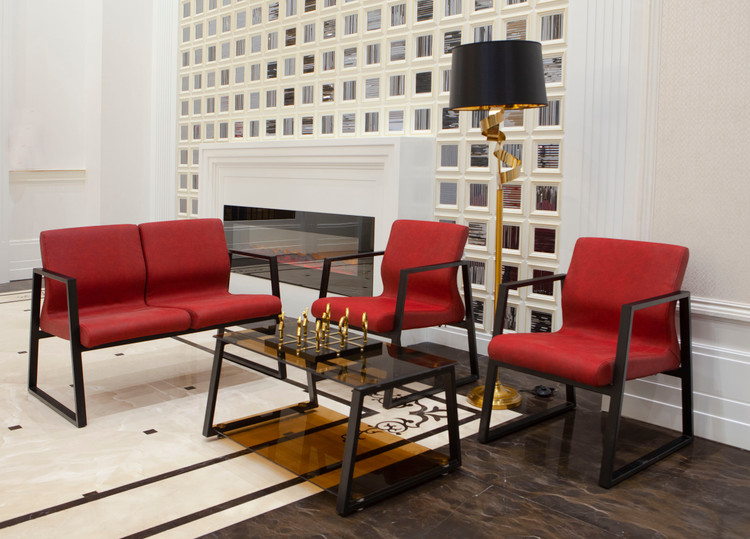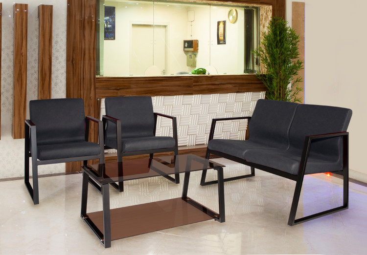 نیم ست فلزی،پروفیل ۴۰در ۲۰ ضخامت ۱.۲۵، فریم فلزی فوم تزریق شده،رنگبندی دارد،رنگ پایه سوپرمات مشکی، جنس رویه چرم یا پارچه، دو عدد تک نفره یک عدد دو نفره به اضافه یک عدد جلو مبلی