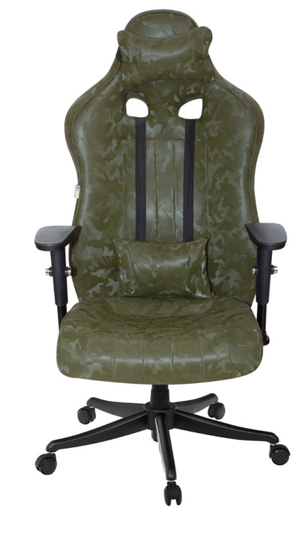 صندلی گیمینگ چریکی سبز مدل G2021،دارای مکانیزم براکت دار دو دستگیره،دسته تنظیمی،بالشتک پشتی کمر و پشتی گردن متحرک،پایه مدیریت فولادی باپوشش رنگ سوپرمات مشکی،چرخ ژله ای، جک کلاس ۴،روکش چرم چریکی، مناسصندلیب برای افراد با قد بالای ۱۷۰ سانتی متر، مناسب برای استفاده طولانی